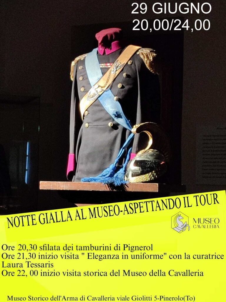 Partecipa a una serata unica con la sfilata dei tamburini di Pignareul alle 20:30. Alle 21:30, visita guidata della mostra con la curatrice Laura Tessaris. Alle 22:00, esplora il Museo della Cavalleria. Scoperta e divertimento ti aspettano!